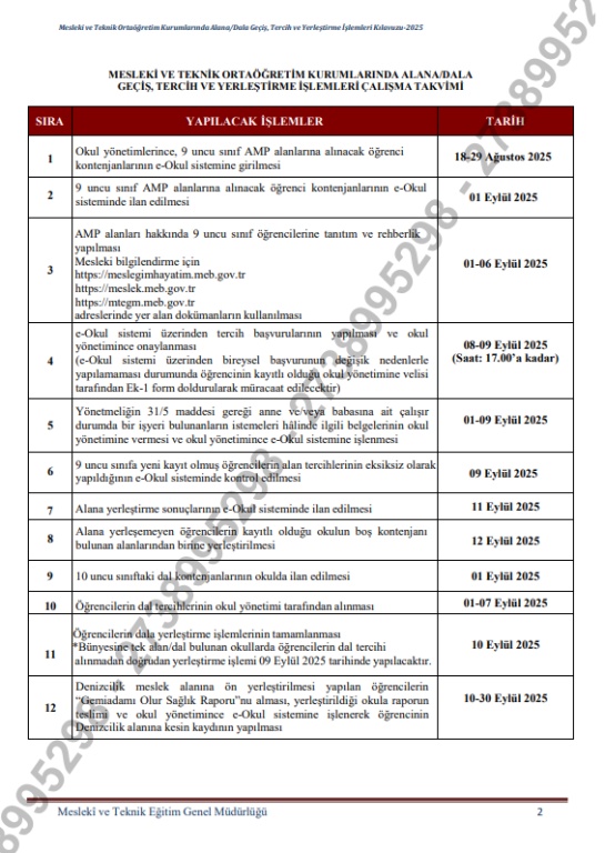 Tercih sonuçları 11 Eylül 2025 tarihinde e-okul sisteminden ilan edilecektir.